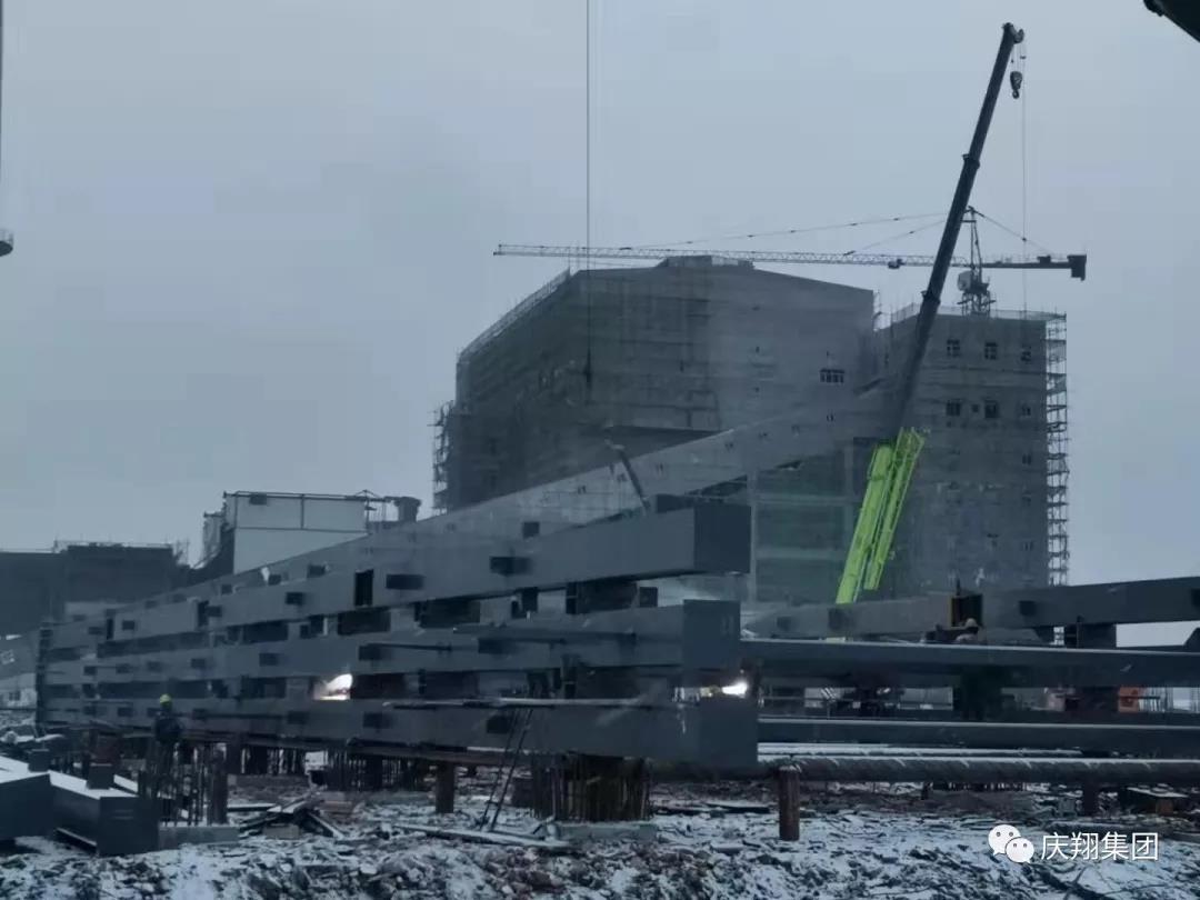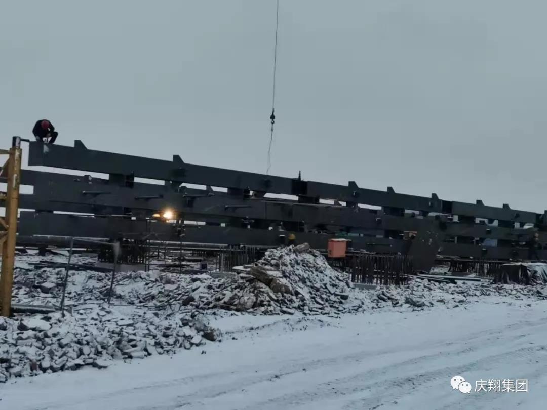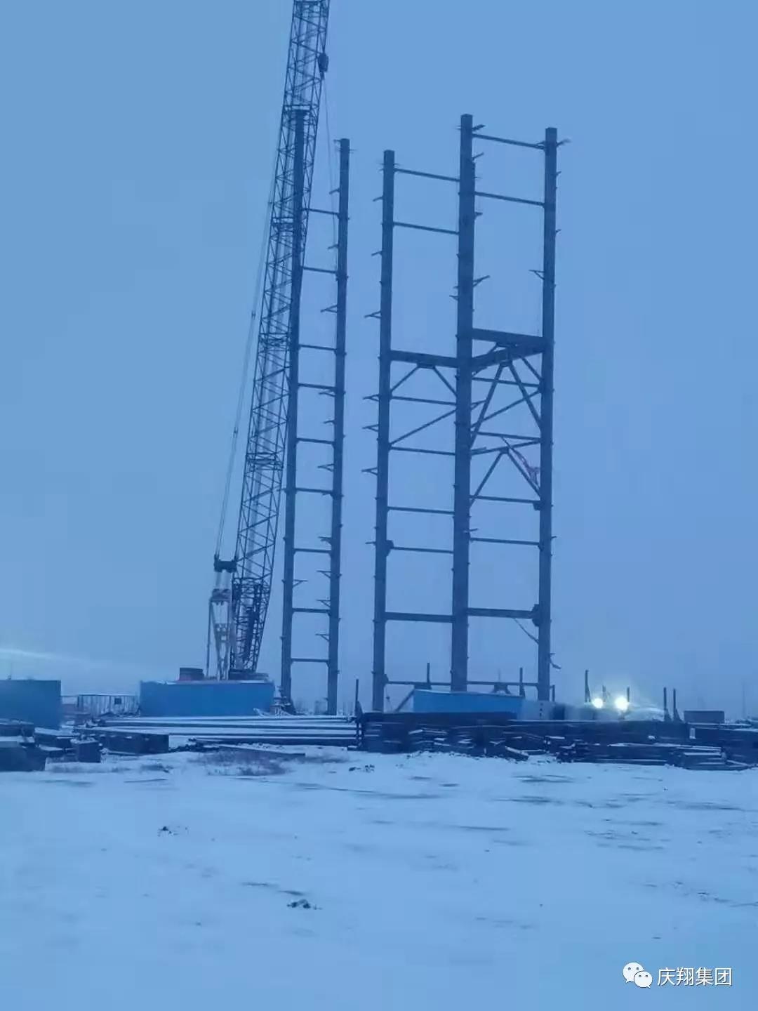 (肇東項目部雪中連夜立鋼架)