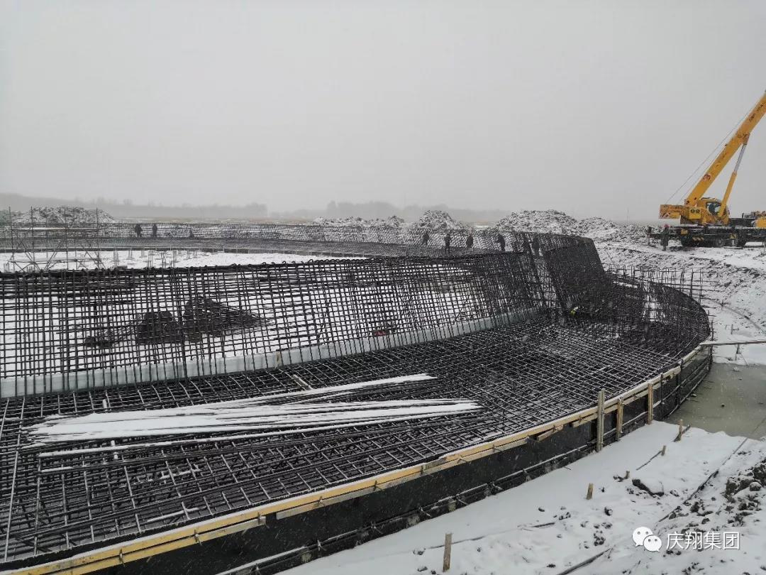 “其實,這場大雪可以說是意料之外、情理之中。我們對氣溫下降,甚至飄雪早有準備。”耿治平說,11月15日,廠房A列澆筑完畢,這標志著整個廠房基礎建設完成,總計使用混凝土1100立方米。當天夜里,氣溫就驟降至零下18度。第二天,慶安項目部組織人員,迅速用稻殼、編織袋等完成了保溫措施。沒過幾天,11月18日天空洋洋灑灑飄起了雪花,“幸好保溫及時,不然下雪后就晚了。”
